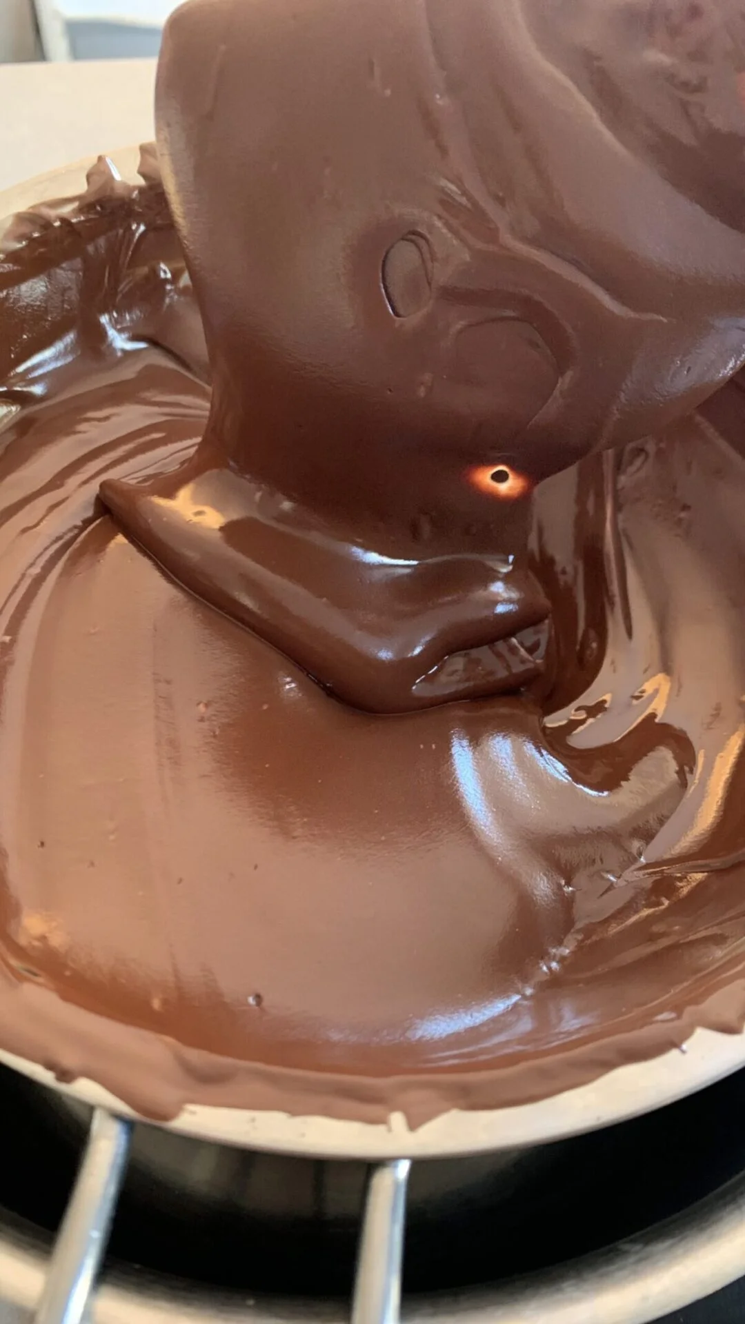 - Roer de chocolade goed door, waardoor het mooi gaat glanzen.