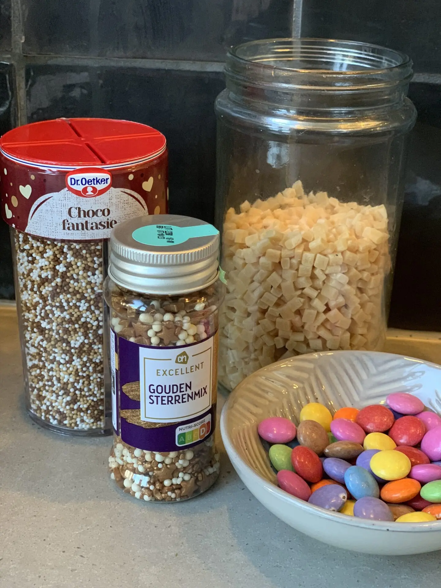 - Sprinkels en alles wat lekker is op de chocoladeletter