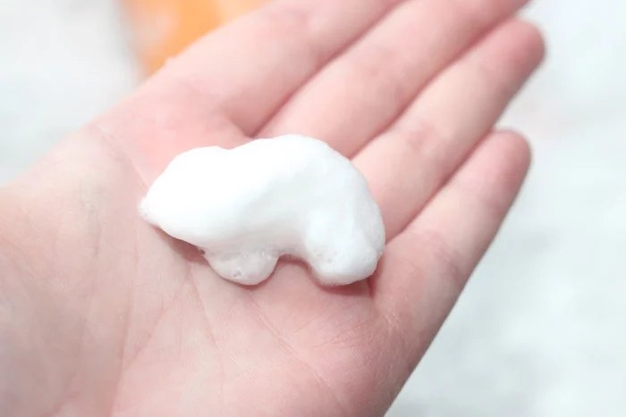 Eerst is de substantie wat harder, inderdaad net zoals scheerschuim ;) Bij scheerschuim is het zo dat het eerst wat harder is qua substantie en dat het later uitzet en als je het uitsmeert, het heel zacht op je huid wordt. Dat is bij Kneipp douche foam Morning Kiss ook zo. Het wordt heel erg zacht op je huid en dat voelt enorm fijn aan. Ook is het heel zuinig in gebruik omdat je maar een klein beetje product nodig hebt. Het zet namelijk uit waardoor het lijkt of je meer krijgt en als je het uitsmeert gaat het ook erg lekker schuimen.