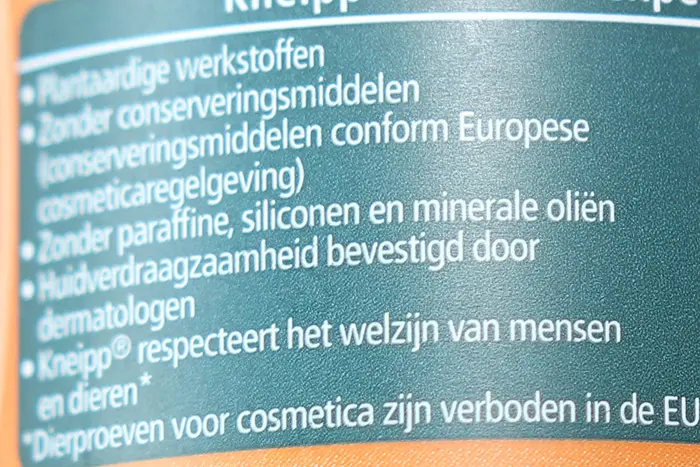 Een goed pluspunt vind ik is dat Kneipp niet test op dieren, zoals ook verboden is in de EU. Ook wordt het product door middel van perslucht uit de bus gedrukt en niet door middel van drijfgas. Dat maakt het product ook een stuk milieu vriendelijker.